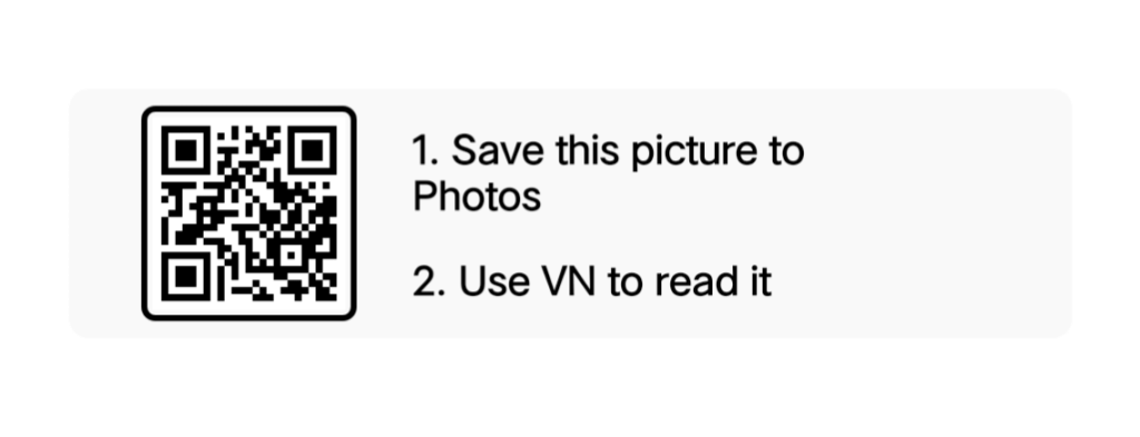 2. Save the Template QR Code Image: The crucial first instruction on the template image is mandatory: Save this picture to Photos. The VN app requires permission to access the image from your device’s photo library to successfully execute the QR code scan and import the structural data.
